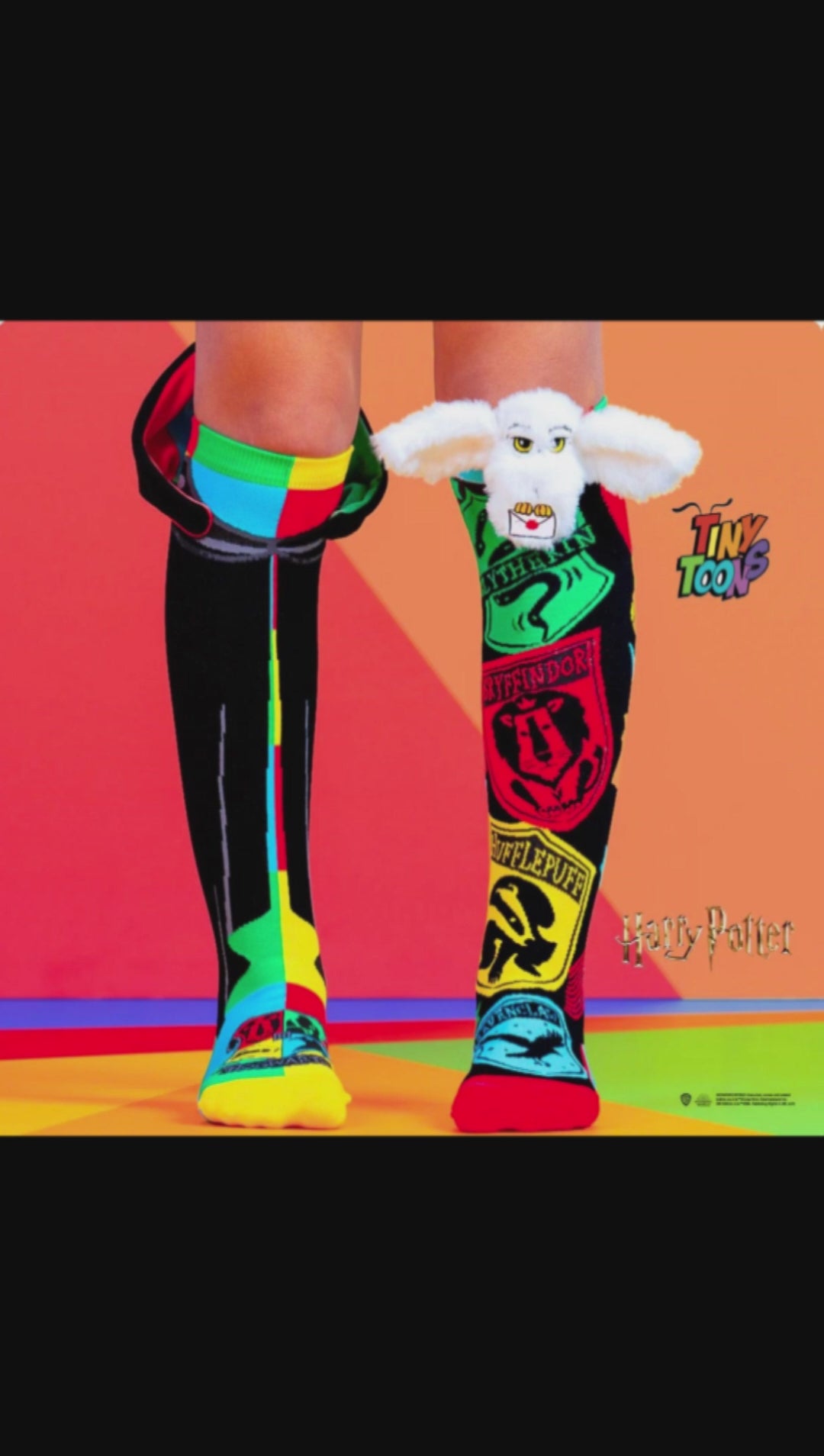 MADMIA , Harry Potter Embrace the magic of Hogwarts with our vibrant Hogwarts & Hedwig Socks! Showcasing the iconic crests of Gryffindor, Slytherin, Ravenclaw, and Hufflepuff, these bold, mismatched socks are pure magic. Featuring a custom hoodie on one sock and a plush Hedwig owl on the other
